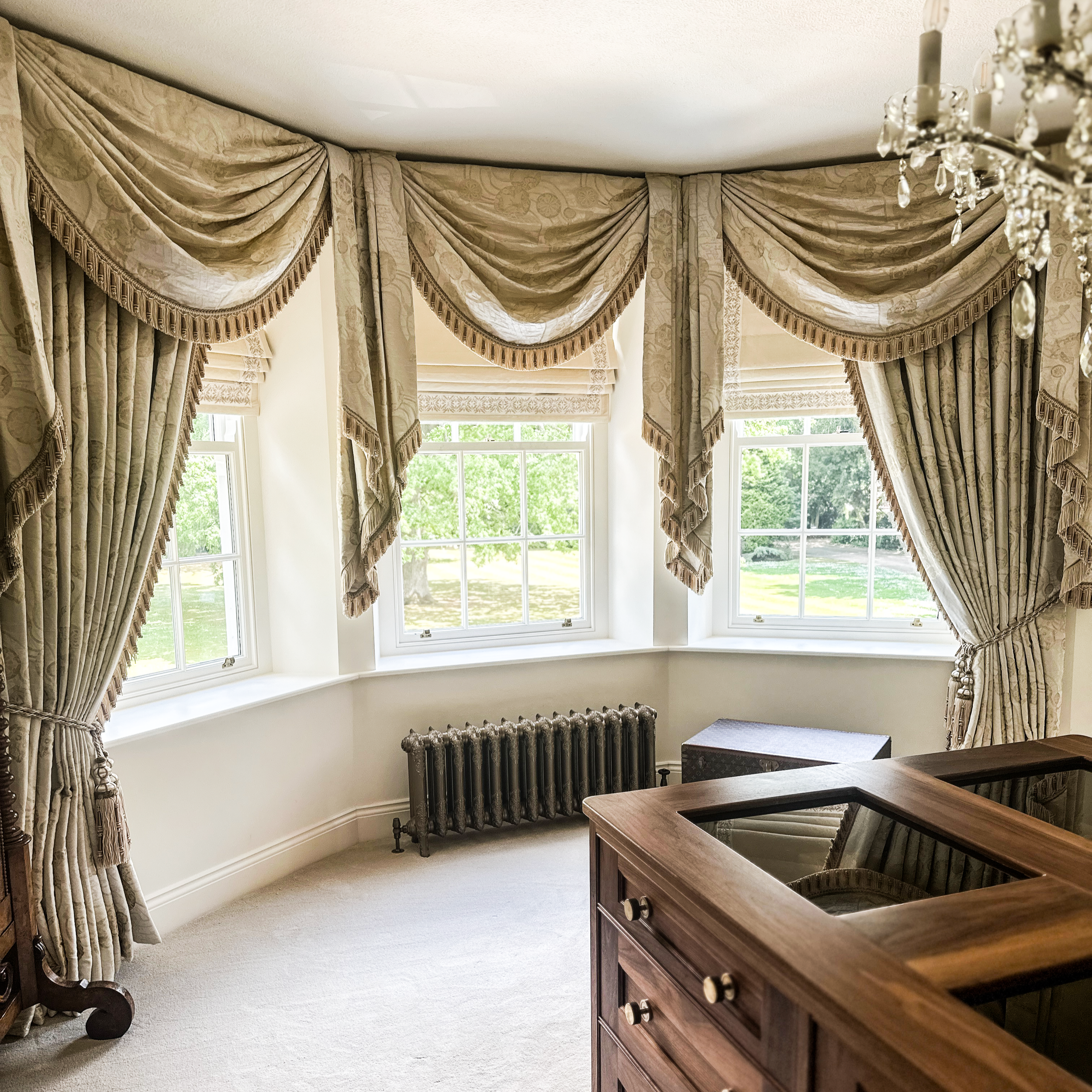 Our expertise in Technical Window Treatments & soft furnishings allows you to embrace these rich patterns and textures on a grand scale. Imagine floor-to-ceiling drapery in a luxurious vintage-inspired print, perfectly complemented by smart-home motorisation for effortless control. Furthermore, our Photorealistic 3D Visualisation is invaluable here, allowing you to confidently experiment with bold patterns and colour combinations before any commitment. You can see how that "Timeless Vintage" floral will truly integrate into your "New English Home" vision.