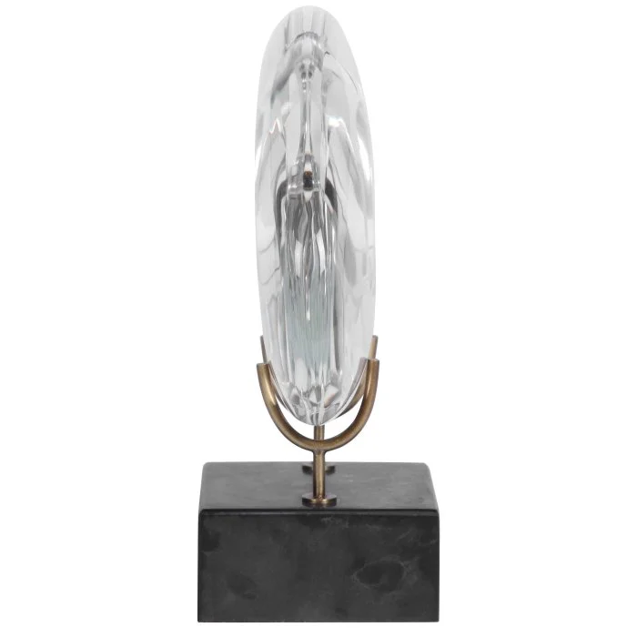 Heavy crystal block candleholders on machined brass legs: sculptural yet domestic. Each pairs an optically pure crystal prism with satin‑finished brass, creating a hovering, balanced effect. Includes distressed off‑white candles, 3" x 3" and 4" x 3", their aged surfaces contrasting the crisp geometry.